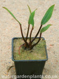 And now for something unique and rather special. We selected this stunning bright red stemmed plant from a large batch of standard Orontium aquaticum (Golden Club) seedlings some years ago. This has proven to be a stable colouration, something we have never seen before! The leaves are also quite unusual, being a much stronger shade of green, and thus contrasting beautifully with the stems. In addition, the plant keeps more of its leaves throughout the winter than the standard Orontium aquaticum does. The best colouration is achieved in full sun, and planting in shallow water shows the colours off to best effect. As with the ordinary Orontium aquaticum, the plant is clump-forming and very slow growing.